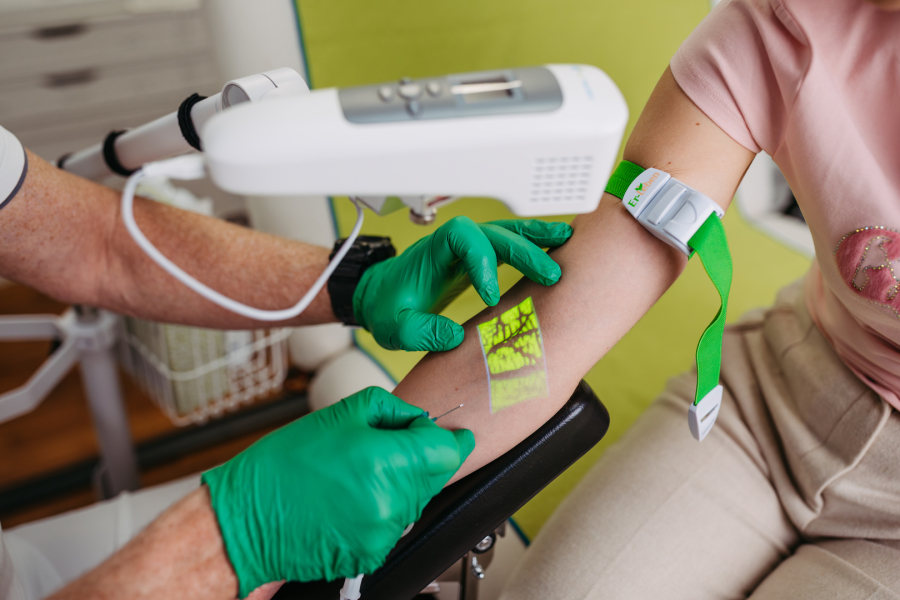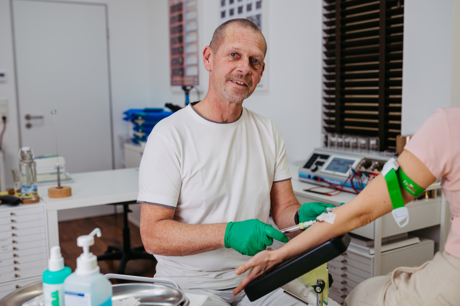 - Sollte die Gefäßzeichnung einmal sehr fein und tiefliegend sein, wie es nicht selten, v.a. bei den Jüngsten, vorkommt, dann setzen wir moderne Venen Such- und Darstellungsgeräte aus der klinischen Medizin ein. Die Blutentnahme kann dann schonend ohne Traumata des Betroffenen stattfinden.